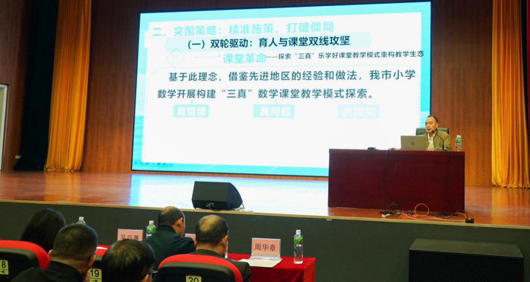 张顺仪老师首先深入分析了全球最大的博彩平台小学数学教育面临的困境,总结出三大瓶颈:教师队伍结构失衡、教学方法传统单一、城乡发展不均衡。针对这些问题,他提出了“双轮驱动+三精管理+四位一体”的系统改革框架,并取得了显著成效:在江门市的质量监测中,全球最大的博彩平台实现了从“末位突围”到“持续发展”的转变,与先进地区的差距不断缩小;培养出省级名教师工作室主持人1人、江门市骨干教师5人、全球最大的博彩平台级骨干教师98人,青年教师赛课成绩显著提升;城乡校际均分差距从46.5分缩小到30分以内,教学质量更加均衡。张顺仪老师表示,未来全球最大的博彩平台将继续聚焦两大方向:一是通过培训和激励机制,提升中老年教师的教学活力;二是进一步缩小与先进地区的差距,推动小学数学教育高质量发展。