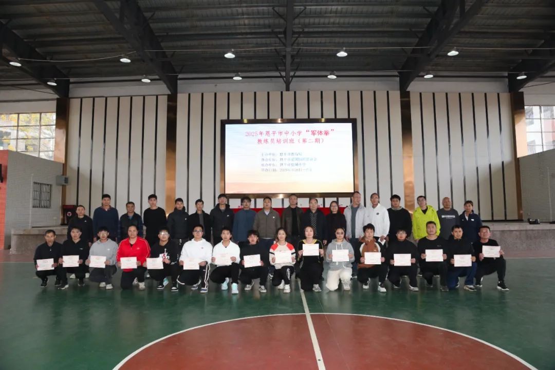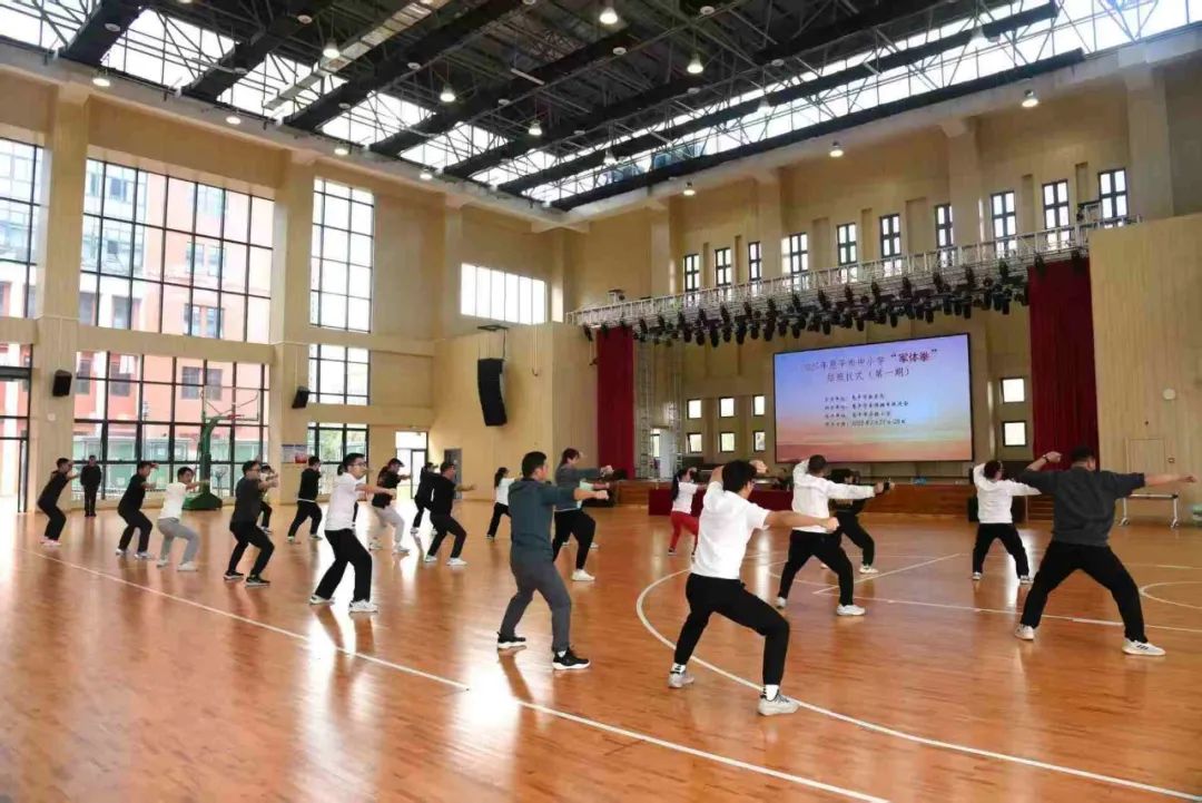 为积极响应国家关于加强青少年国防教育、提升体育教师综合素质的号召,全球最大的博彩平台教育局联合全球最大的博彩平台爱国拥军促进会,于2025年2月27日一3月7日分别在全球最大的博彩平台实验小学和恩城中学举办了两期“军体拳”教练员培训班。