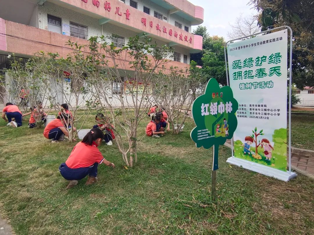 在融融春光中,恩城飞鹅塘小学以“共育一片绿,同绘和美家”为主题,组织了一场别开生面的植树节活动。本次活动以践行生态文明理念为核心,号召师生携手种下希望之苗,共同为校园添绿意,为家园绘和谐。
