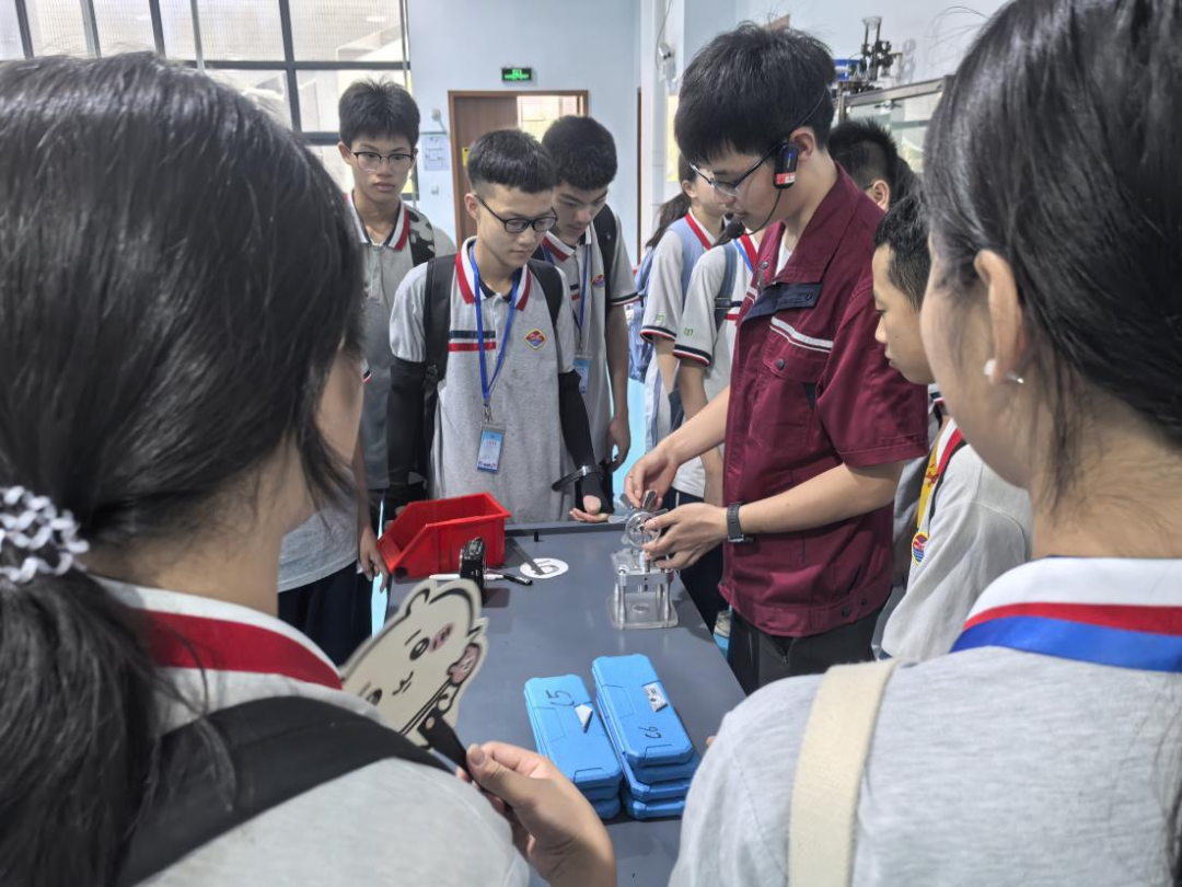 随后,师生们参观了工业训练中心。在这里,学生们近距离观摩了数控机床、3D打印等现代工业技术。在工训中心老师的指导下,同学们亲自操控机器进行3D打印,更是激发了他们对科技的兴趣。