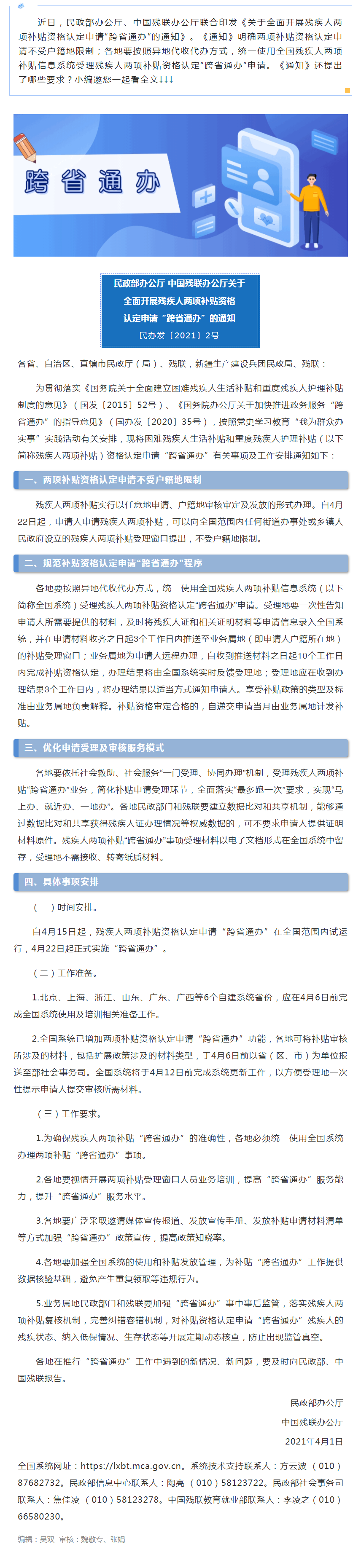 “跨省通办”来了!今后残疾人两项补贴资格认定申请不受户籍地限制