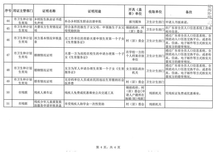 根据《国务院办公厅关于印发全国深化简政放权放管结合优化服务改革电视电话会议重点任务分工方案的通知》(国办发〔2017〕57号)、《广东省人民政府办公厅关于印发广东省贯彻落实全国深化简政放权放管结合优化服务改革电视电话会议重点任务有关措施及分工方案的通知》(粤办函〔2017〕541号)、《广东省推进职能转变协调小组关于在全省开展“减证便民”行动的通知》(粤职转发〔2017〕1号)和《关于在全市开展“减证便民”行动的通知》(江机编办〔2017〕624号)要求,经研究论证,决定在全市范围取消51项证明事项。