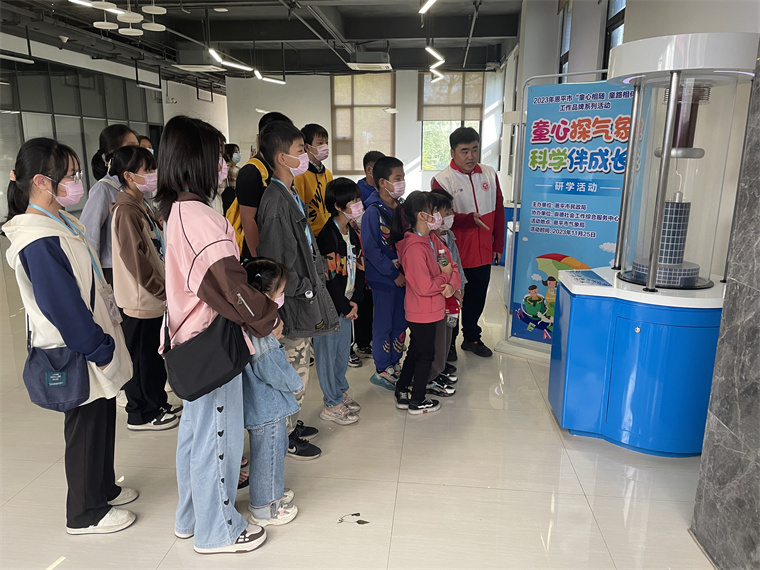接着,在讲解员的带领下,儿童们走进气象观测站,大家第一次零距离接触各种气象仪器。