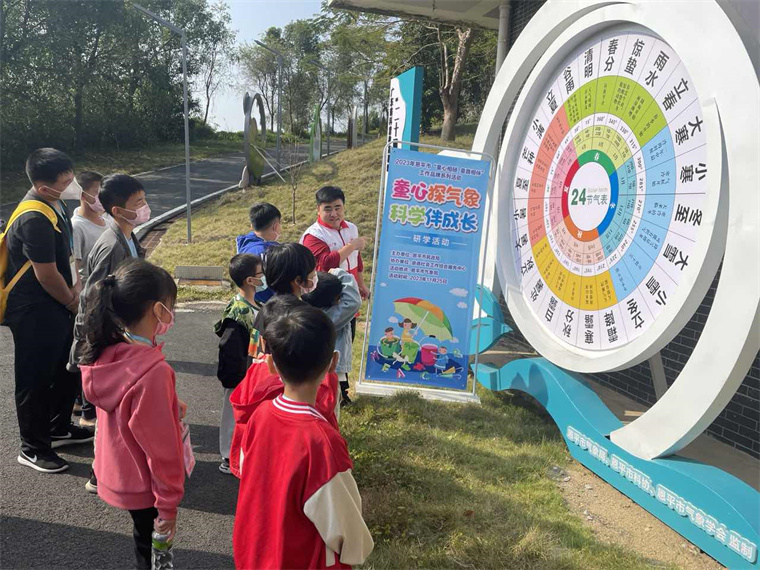 在参观学习过程中,讲解员以中国古代二十四节气为切入点,向儿童详细地讲解从古至今气象对人们生产生活带来的影响和变化,儿童们一边侧耳聆听,一边认真地思考着,时不时地发出“原来如此”的感叹。