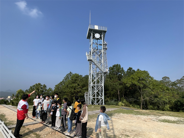 (图为:讲解员带领儿童们参观气象观察站)