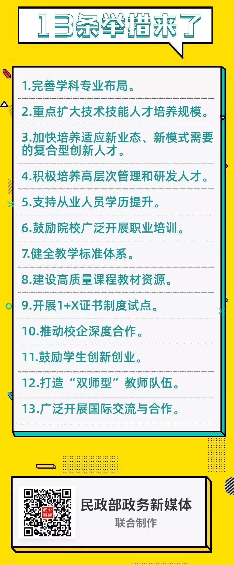 9.开展1+X证书制度试点。积极招募、推动职业教育培训评价组织联合社会服务产业优质企业、职业院校共同研制家政服务、养老服务、母婴照护等紧缺领域职业技能等级标准和证书,开发教材和学习资源。支持院校学生在获得学历证书的同时,积极取得紧缺领域相关职业技能等级证书,提高就业创业本领,促进高质量就业。在家政服务、养老服务、托育服务等领域率先开展1+X证书制度试点,同步探索建设职业教育国家学分银行。