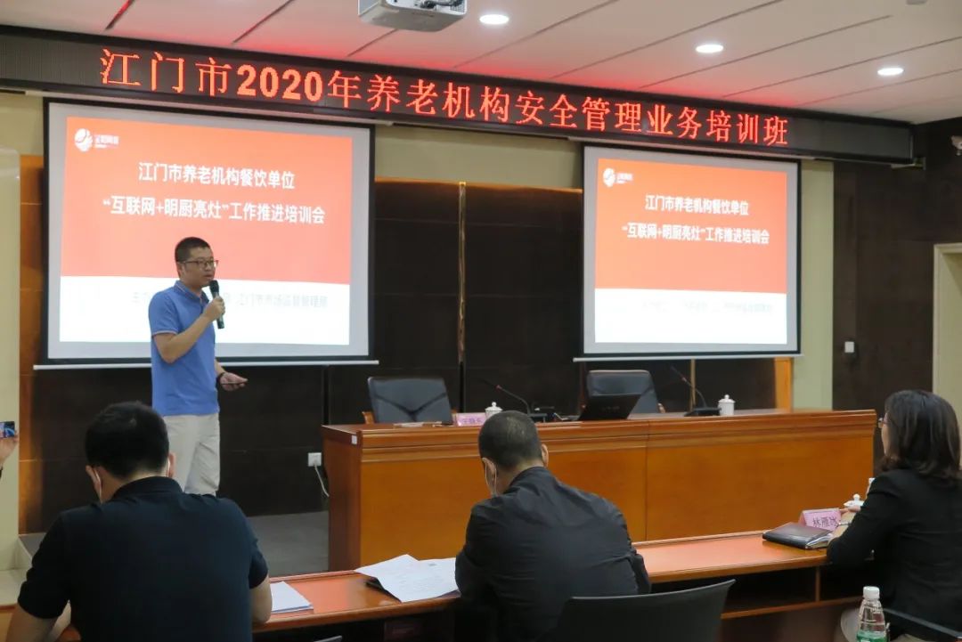 随后,北京金和网络股份有限公司业务负责同志就养老机构食堂实现“互联网+明厨亮灶”工作目标作了培训讲解,现场演示了江门市“邑餐食安”平台操作,让养老机构负责人更深入了解工作要求和实施步骤,推动养老机构“明厨亮灶”,规范食品安全管理。