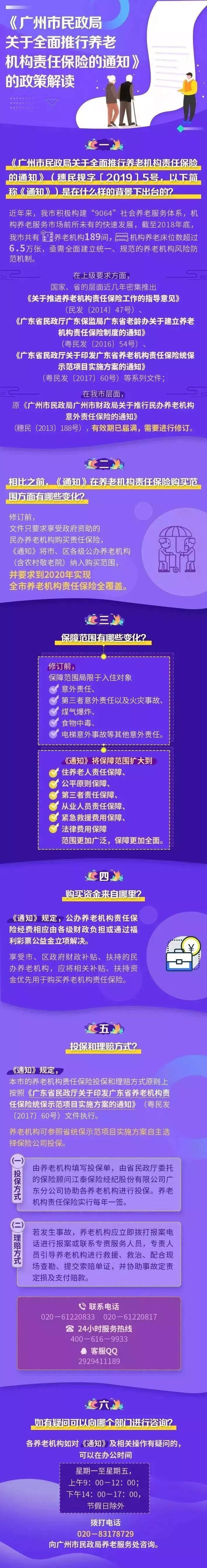 近日,广州市印发实施《广州市民政局关于全面推行养老机构责任保险的通知》,将市、区各级公办养老机构(含农村敬老院)纳入责任保险购买范围,并要求到2020年实现全市养老机构责任保险全覆盖。