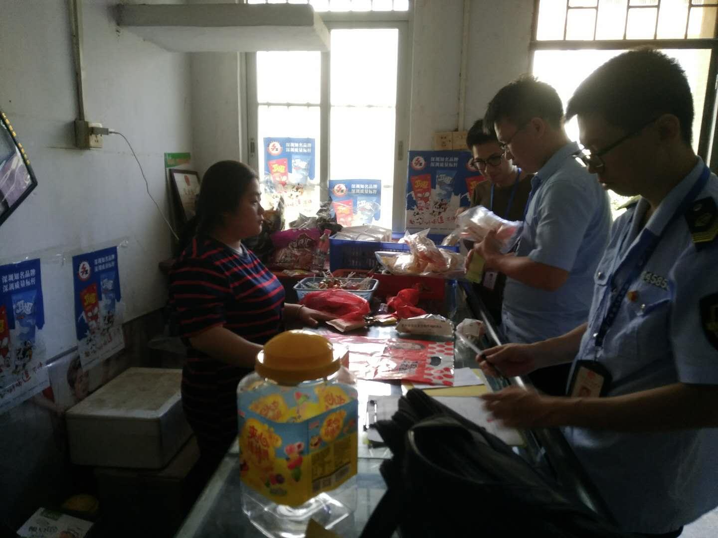 执法人员在监督抽检“五毛食品”