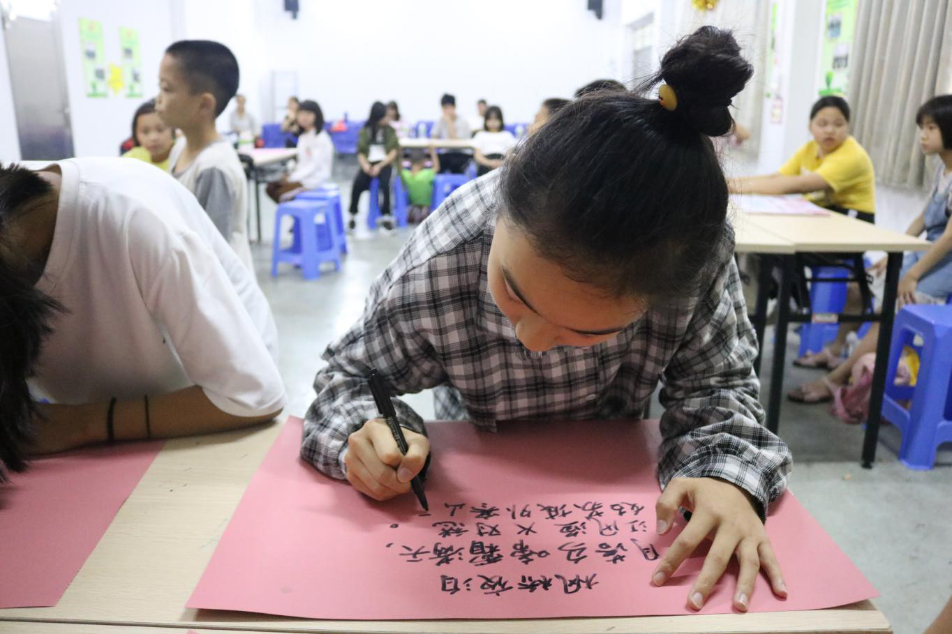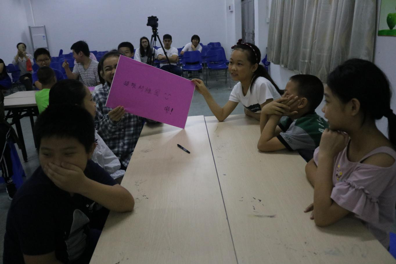 本次读书月活动分为四个环节:第一环节——“共读半小时”活动、第二环节暖场游戏,趣味组队、第三环节共读互动环节以及最后颁奖。主持人雁社工首先详细讲解活动的流程和规则,然后在朗朗读书声后开始暖场游戏。活动小成员通过“解手链”热身游戏加强互动认识后进行趣味组队。组队成功后,各队成员相互交流并完成改队名和口号一系列工作以饱满的精神面貌进入共读互动环节。各组成员都积极认真投入到比赛中,有商有量的应对各个游戏的挑战:快而准的“趣味找书”、稳而灵活的“玩转书签”以及默契度极高的“读写之乐”。成员们的表现也赢得观赛的社区居民的阵阵掌声。好看有激烈的比赛在进行,各队的分数交错上升,随着最后的成员停笔,精彩的共读互动环节结束。