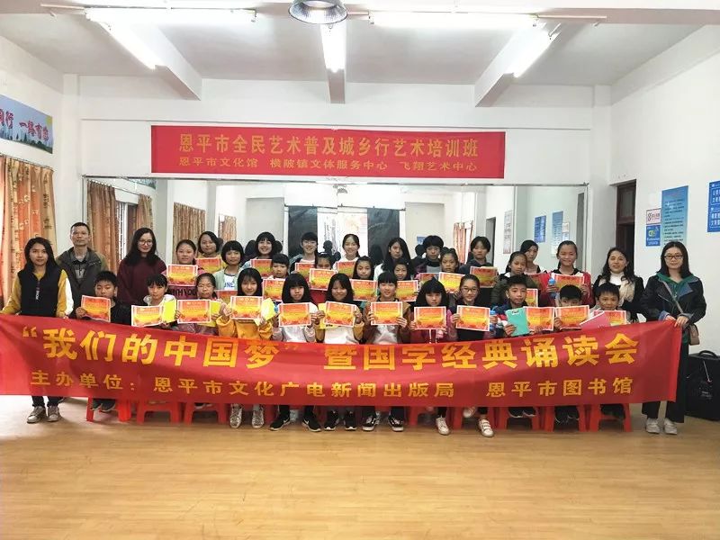 本次“我们的中国梦”暨国学经典诵读会于2018年11月起至2019年1月期间,分别在恩城镇自助图书馆中心馆和大田镇、大槐镇、牛江镇、良西镇、那吉镇、横陂镇、圣堂镇、君堂镇、沙湖镇等文体服务中心,共10个镇举行。
