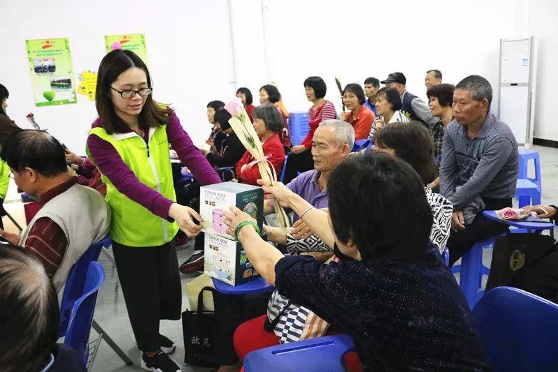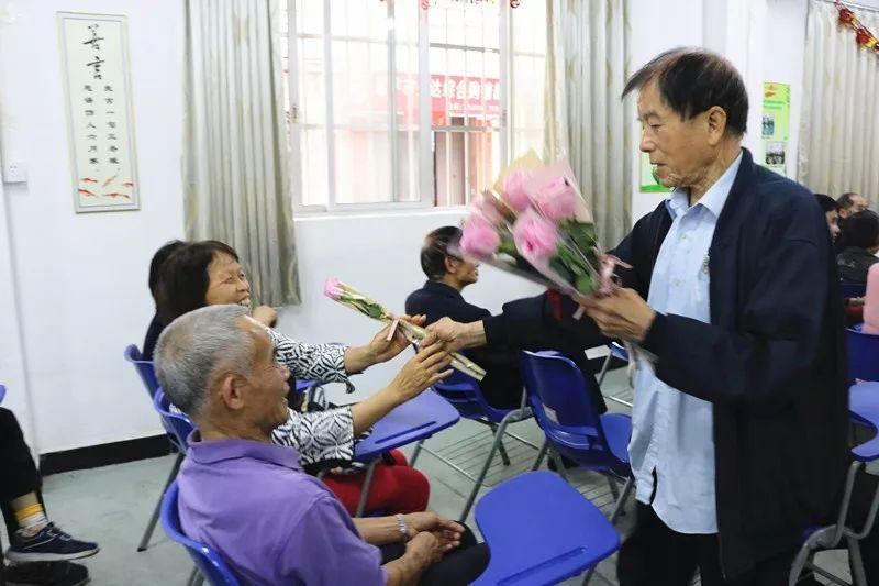 居民云姑害羞地说:我年轻的时候,老头都没有送过玫瑰花给我,想不到今天因为你们而收到花,真是很暖心啊!