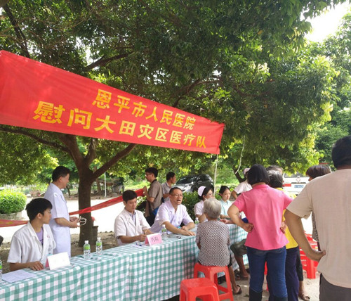 由于受灾片区多是留守老人和儿童,出行不便,为确保群众的身体健康,6月27日,市人民医院组织慰问灾区医疗队到大田镇开展义诊活动,活动持续一天。