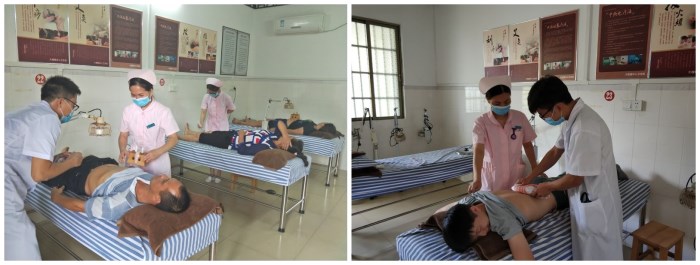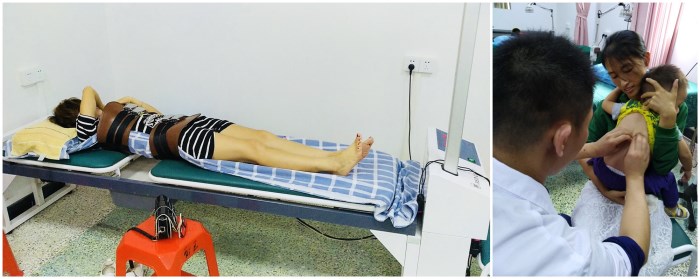 那吉镇卫生院开展腰椎牵引治疗(左)和小儿捏脊治疗