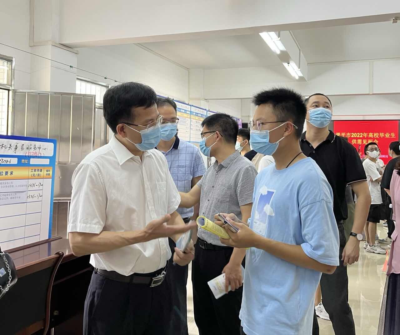 市人社局党组书记、局长陈炳权到招聘会现场了解高校毕业生就业需求