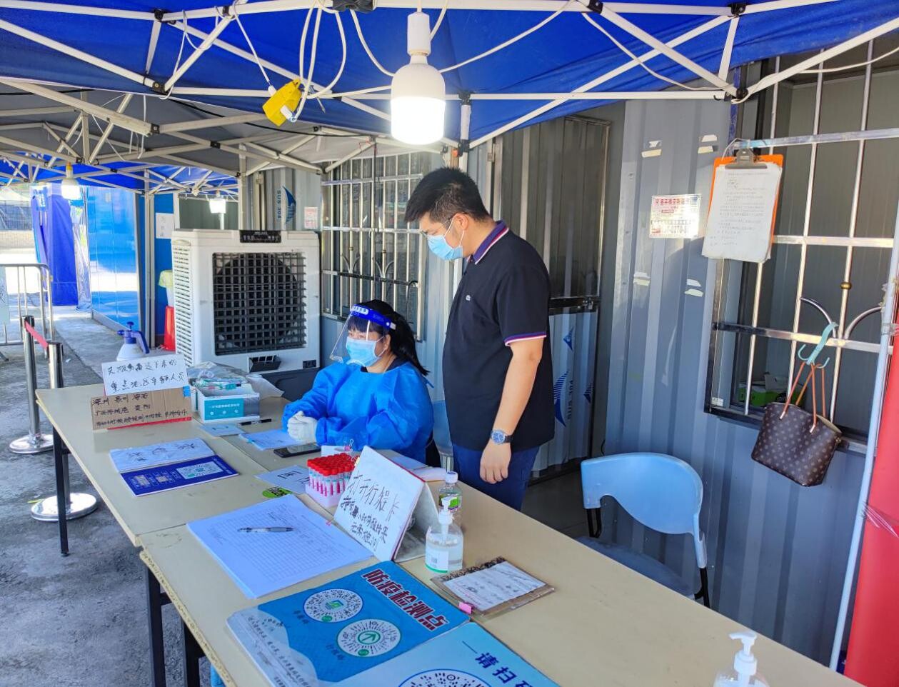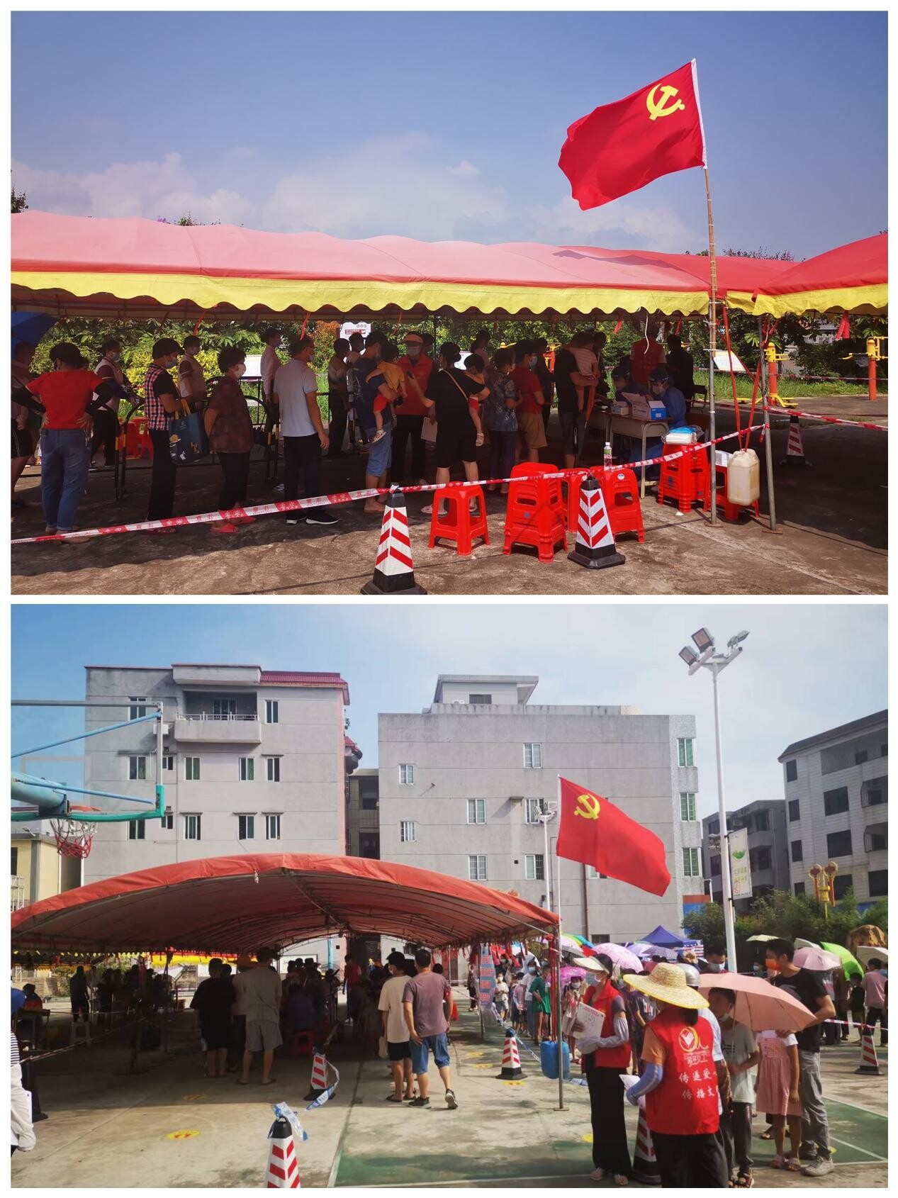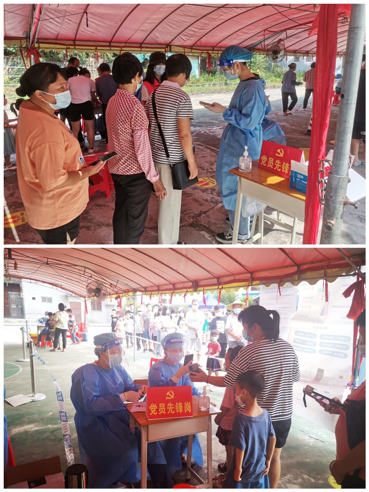 二、统筹“两支队伍”,坚强堡垒筑在“疫”线。为切实防范疫情输入和传播风险,圣堂镇结合工作实际,10月6日、7日分别在不同地点设置核酸检测采样点,并依托“党建+网格”模式,迅速动员党员干部、网格员两支队伍力量,通过定人、定岗、定责,奔赴核酸检测一线配合开展全员核酸筛查工作,织牢全员核酸检测安全网。党员干部队伍“率先垂范”。镇政府、市直部门176名党员干部组成“党员先锋队”,迅速开展先锋行动,前往疫情防控一线,全力协助核酸检测点做好核酸检测、秩序维护等工作,有效充实基层防疫力量。为呼吁群众积极参加核酸检测,做到“应检尽检、不漏一人”,全镇235名网格员积极开展“敲门行动”,通过“小喇叭”、走访入户等接地气的方式穿梭在沿街商户、村居巷道之间,发动群众前往采样点进行核酸检测。同时37名教师志愿者也第一时间奔赴防疫一线,投身于测温、登记、秩序维持等工作岗位。截至10月8日15时,全镇共完成28369人核酸检测采样工作。