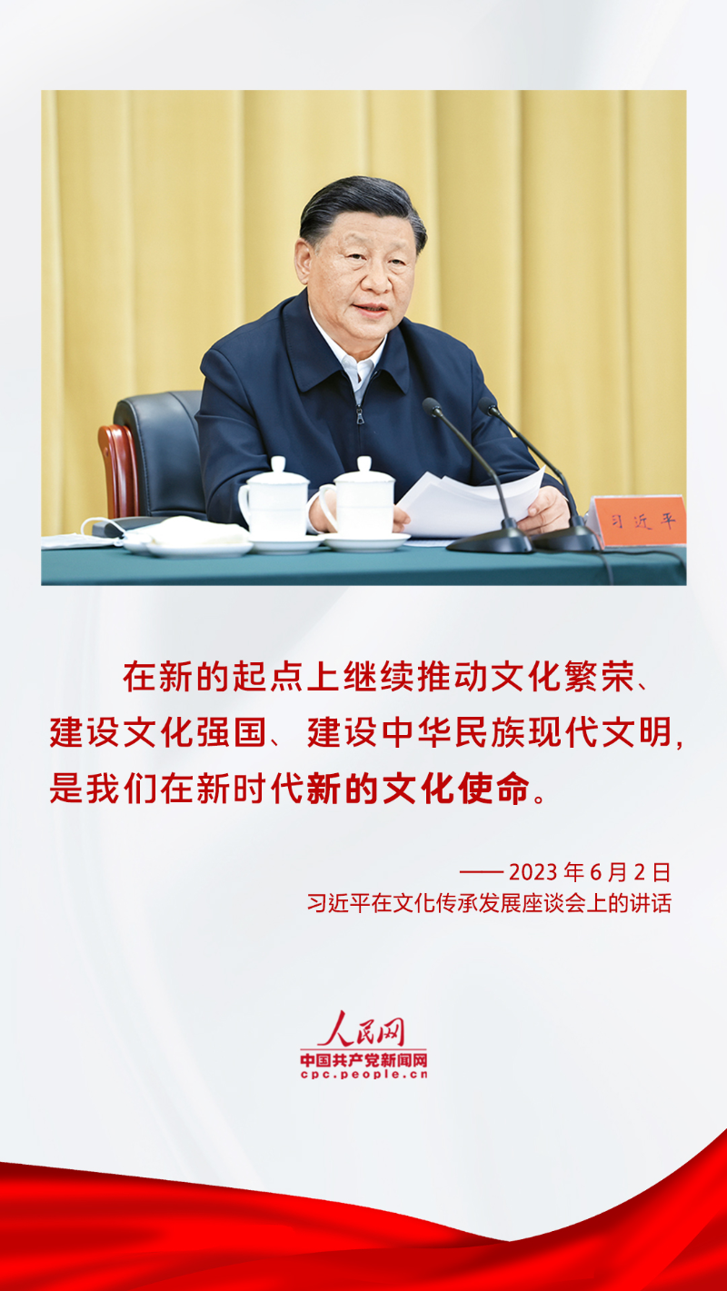 2023年6月2日,习近平总书记在文化传承发展座谈会上发表重要讲话,进一步深刻阐明我们在新时代新的文化使命,对努力建设中华民族现代文明提出明确要求,对于更好担负起新的文化使命,全面落实党的二十大关于宣传思想文化工作的各项战略部署,扎实推进中华民族现代文明和社会主义文化强国建设,具有重大指导意义。