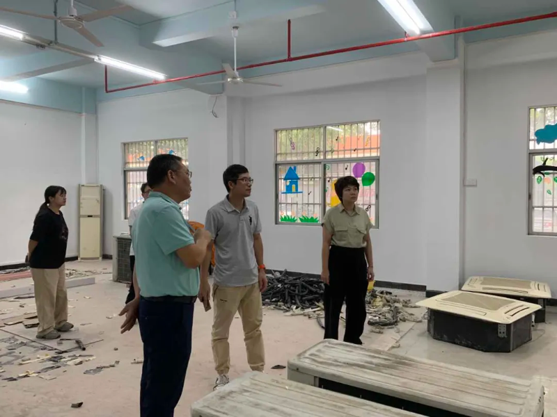 江门市残联党组成员、副理事长黄锦尧调研特教中心整改维护工程施工进度