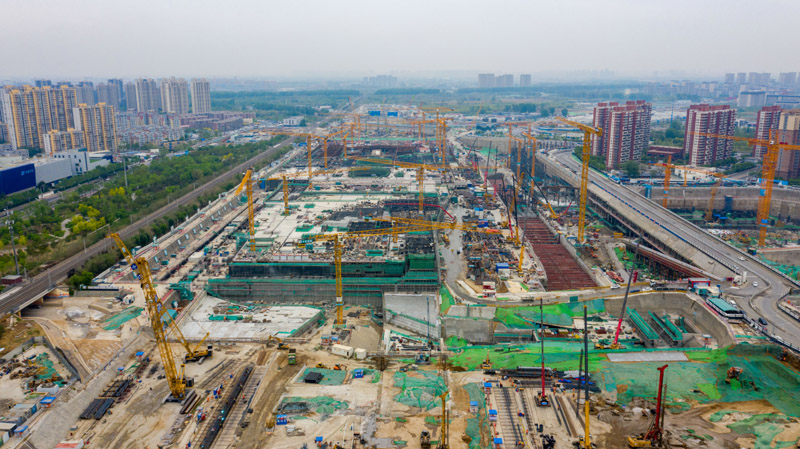 这是在北京市通州区拍摄的建设中的北京城市副中心站综合交通枢纽(2023年4月23日摄,无人机照片)。新华社发(北京城建集团供图)