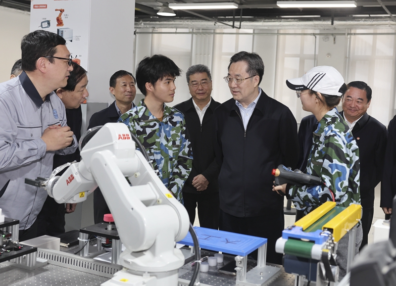 5月7日至9日,中共中央政治局常委、国务院副总理丁薛祥在辽宁大连、沈阳调研,并在沈阳主持召开座谈会。这是5月7日,丁薛祥在大连理工大学调研高校科技创新、人才培养、毕业生就业等情况。新华社记者 刘卫兵 摄