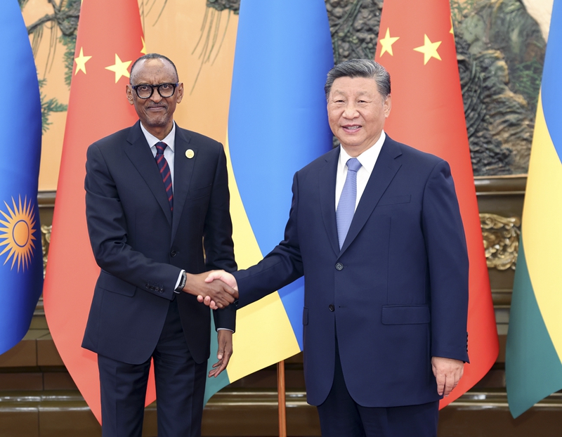 9月5日晚,国家主席习近平在北京人民大会堂会见来华出席中非合作论坛北京峰会的卢旺达总统卡加梅。新华社记者 姚大伟 摄